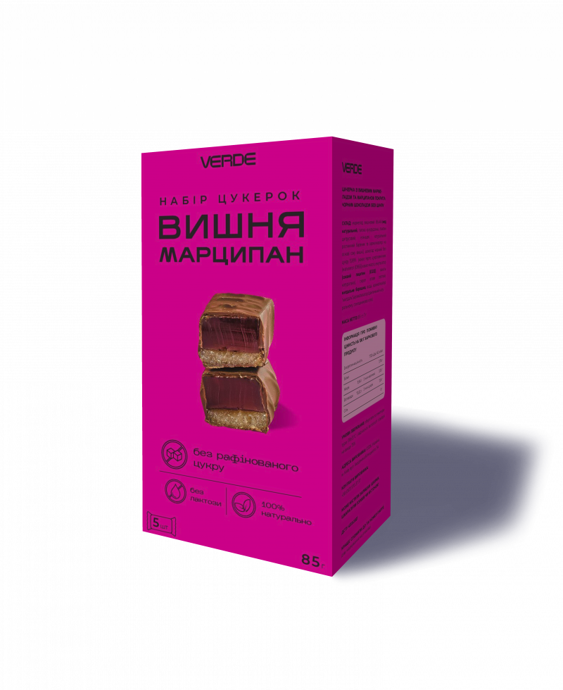 Набір цукерок без цукру вишня-марципан Verde – це смачні та корисні смаколики від українського виробника.